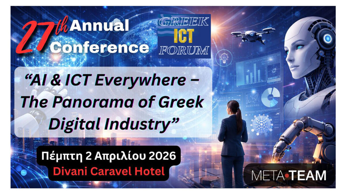 Το 27ο Greek ICT Forum θα πραγματοποιηθεί στις 2 Απριλίου 2026 στο Ξενοδοχείο Divani Caravel στην Αθήνα, αποτελώντας τον κορυφαίο συνεδριακό θεσμό Τεχνολογιών Πληροφορικής και Επικοινωνιών στην Ελλάδα. Με κεντρικό θεματικό άξονα «AI & ICT Everywhere – The Panorama of Greek Digital Industry», το Forum αναδεικνύει τον καθοριστικό ρόλο της Τεχνητής Νοημοσύνης και των υποδομών ICT στην ανάπτυξη της ελληνικής οικονομίας και κοινωνίας μέσω των ψηφιακών τεχνολογιών.