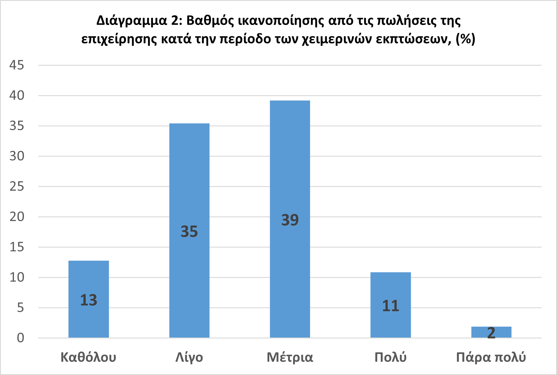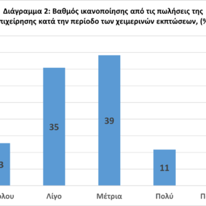 - Αν και μετά τις απογοητευτικές επιδόσεις του 2025 οι προσδοκίες των εμπόρων παρέμειναν χαμηλά, οι μισές επιχειρήσεις (48%) εμφανίστηκαν από λίγο έως καθόλου ικανοποιημένες από τις πωλήσεις κατά τη διάρκεια των χειμερινών εκπτώσεων (Διάγραμμα 2).