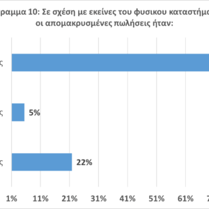 - Για 3 στις 4 επιχειρήσεις οι απομακρυσμένες πωλήσεις ήταν χαμηλότερες εκείνων του φυσικού καταστήματος κατά την εκπτωτική περίοδο, αν και παρατηρούνται σημαντικές διαφοροποιήσεις ανάλογα με το μέγεθος της επιχείρησης (Διάγραμμα 10).