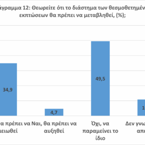 - Μια στις 3 επιχειρήσεις επιθυμεί μείωση της διάρκειας της εκπτωτικής περιόδου, γεγονός που θα μπορούσε να οδηγήσει σε διαβούλευση για το πλαίσιο λειτουργίας των εκπτώσεων (Διάγραμμα 12).