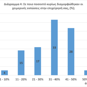 - Ενδεικτικό της στενότητας στην αγορά αλλά και της έντασης της προσπάθειας των εμπόρων να προσελκύσουν τους καταναλωτές αποτελεί το γεγονός ότι 2 στις 3 επιχειρήσεις υιοθέτησαν ποσοστά εκπτώσεων άνω του 30% (Διάγραμμα 4).
