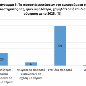 - Επτά στις 10 επιχειρήσεις υιοθέτησαν τα ίδια ποσοστά εκπτώσεων συγκριτικά με πέρυσι, ενώ 1 στις 4 ακόμη υψηλότερα (Διάγραμμα 6).