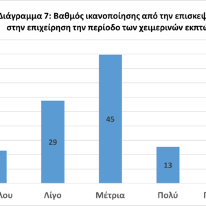 - Τέσσερις στις 10 επιχειρήσεις είναι από λίγο έως καθόλου ικανοποιημένες σχετικά με την επισκεψιμότητα των καταναλωτών, εξέλιξη που οφείλεται και εν πολλοίς στο χαμηλό διαθέσιμο εισόδημα για αγορές (Διάγραμμα 7).