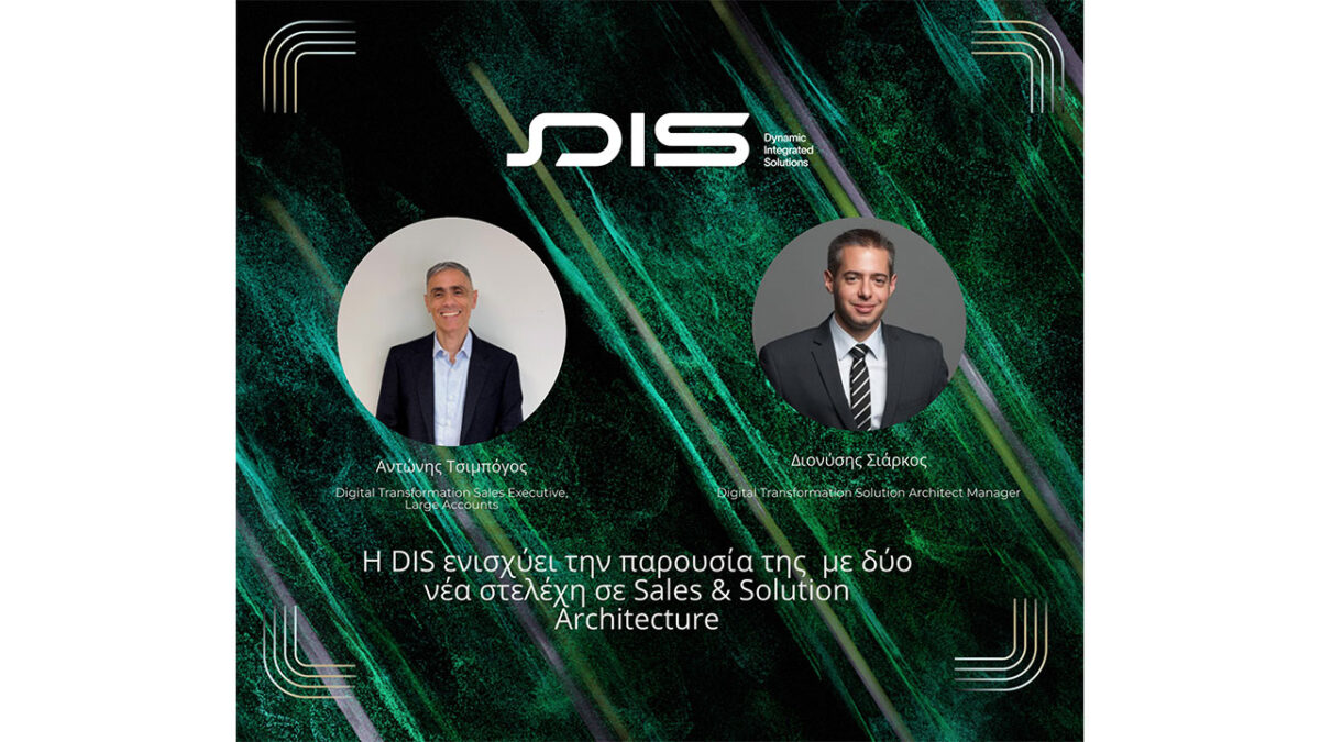 Η DIS Dynamic Integrated Solutions S.A., ο κορυφαίος Microsoft Cloud Solution Provider και συνεργάτης ψηφιακού μετασχηματισμού επιχειρήσεων στην Ελλάδα και το εξωτερικό, ανακοινώνει την ένταξη των Αντώνη Τσιμπόγου και Διονύση Σιάρκου στο δυναμικό της, ενισχύοντας περαιτέρω τις εμπορικές και τεχνικές της ομάδες στο πλαίσιο της συνεχούς ανάπτυξής της.
