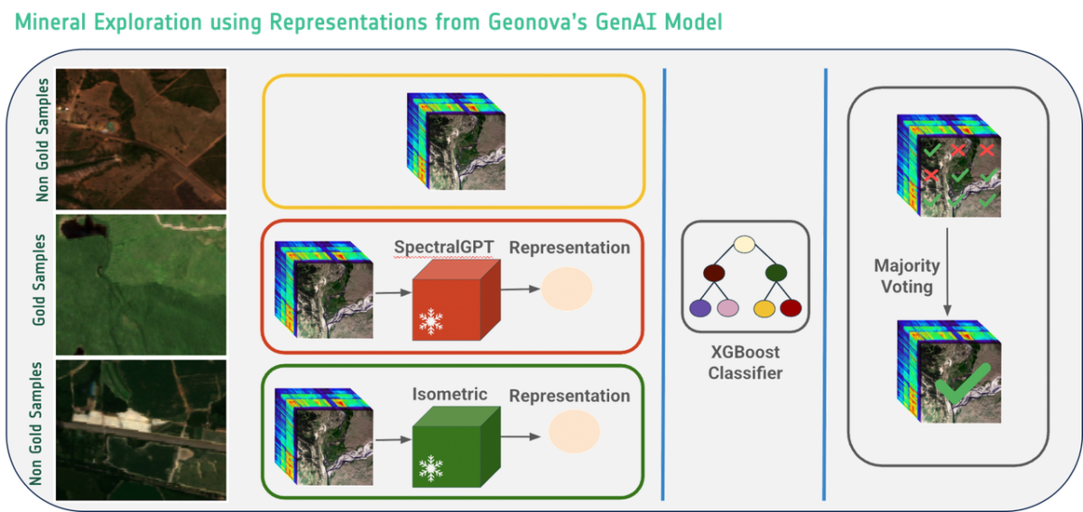 Η GEONOVA εξειδικεύεται στην ανάπτυξη γεωχωρικών διανυσματικών αναπαραστάσεων (embeddings) υψηλής προστιθέμενης αξίας, αξιοποιώντας τεχνικές Generative AI ειδικά προσαρμοσμένες σε πολυφασματικά και υπερφασματικά δορυφορικά δεδομένα. Η τεχνολογία της μετατρέπει δορυφορικές εικόνες και in-situ μετρήσεις σε συμπαγείς, σημασιολογικά εμπλουτισμένες αναπαραστάσεις πληροφορίας, οι οποίες μπορούν να αξιοποιηθούν άμεσα σε εφαρμογές όπως η γεωργία ακριβείας, η εξορυκτική δραστηριότητα, η παρακολούθηση κρίσιμων υποδομών και η περιβαλλοντική συμμόρφωση. Με αυτή την προσέγγιση, η GEONOVA μειώνει δραστικά τον χρόνο υλοποίησης έργων ανάλυσης, περιορίζει το υπολογιστικό κόστος και επιτρέπει την ανάπτυξη κλιμακώσιμων εφαρμογών χωρίς την ανάγκη επαναλαμβανόμενης εκπαίδευσης σύνθετων μοντέλων για κάθε επιμέρους χρήση.