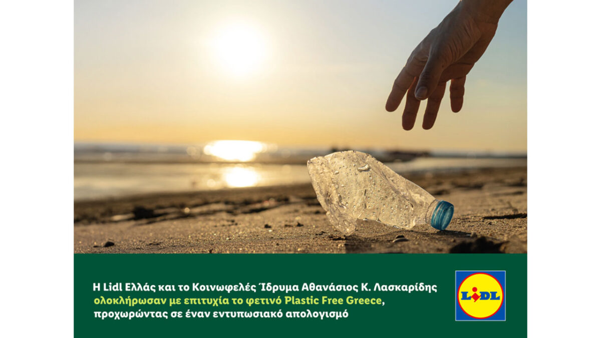 Με αφοσίωση στην περιβαλλοντική προστασία, η Lidl Ελλάς ολοκλήρωσε με επιτυχία για 6η συνεχή χρονιά την πρωτοβουλία Plastic Free Greece, που υλοποιείται σε συνεργασία με το Κοινωφελές Ίδρυμα Αθανάσιος Κ. Λασκαρίδης, υπό την αιγίδα του Υπουργείου Τουρισμού και του Υπουργείου Περιβάλλοντος και Ενέργειας, στο πλαίσιο της εθνικής καμπάνιας «Ελλάδα Χωρίς Πλαστικά Μίας Χρήσης».