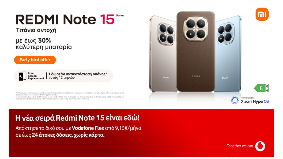 Η σειρά Redmi Note 15 διαθέσιμη στα καταστήματα Vodafone και στο Vodafone eShop