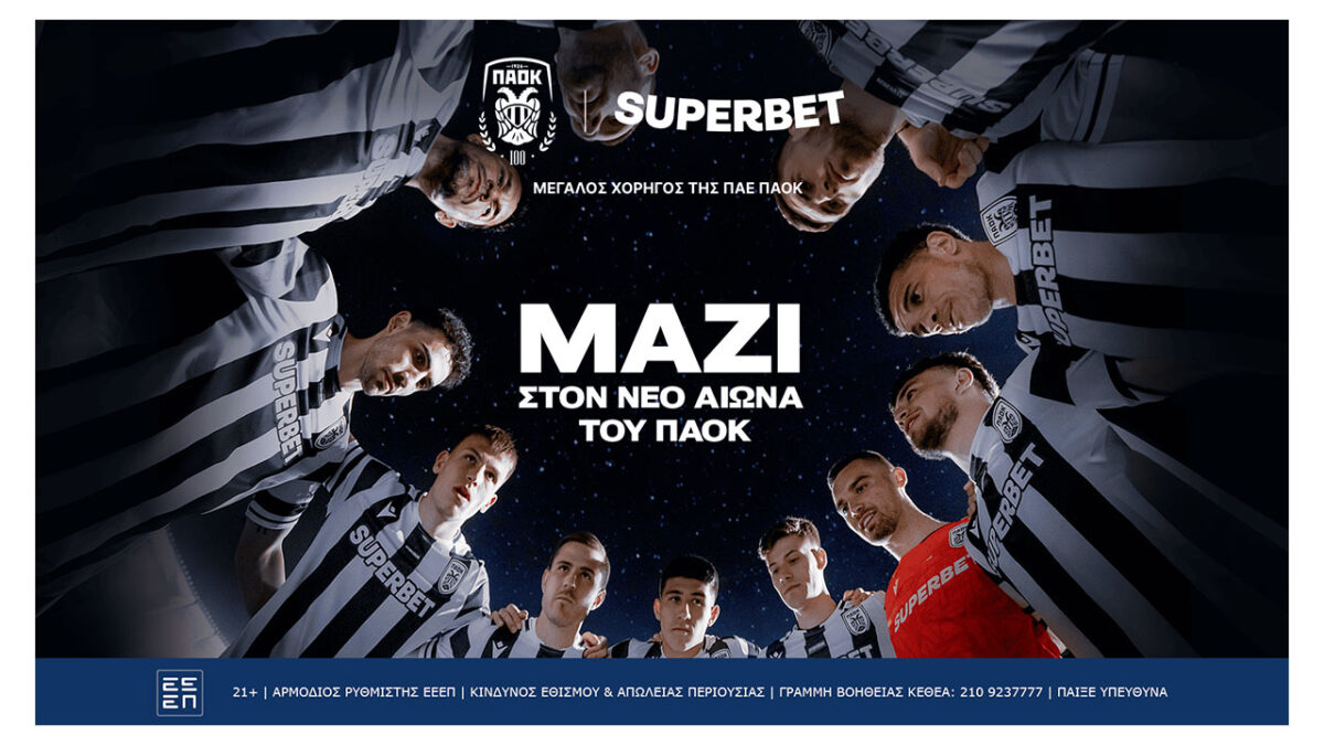 Η Superbet παρουσιάζει τη νέα της καμπάνια για τη συμπλήρωση 100 ετών ιστορίας της ΠΑΕ ΠΑΟΚ και την έναρξη της συνεργασίας της με την ομάδα, αντλώντας έμπνευση από τις ρίζες του συλλόγου και τη διαχρονική του ταυτότητα από την πρώτη ημέρα ίδρυσής του. Με τίτλο «Μαζί στον νέο αιώνα του ΠΑΟΚ», η καμπάνια αναπτύσσεται γύρω από μια νέα ταινία, η οποία τοποθετεί στο επίκεντρο τον πρώτο ύμνο της ομάδας της Θεσσαλονίκης, συνδέοντας το παρελθόν με το παρόν, αλλά και προδιαγράφοντας τον νέο, ασπρόμαυρο αιώνα που ακολουθεί.
