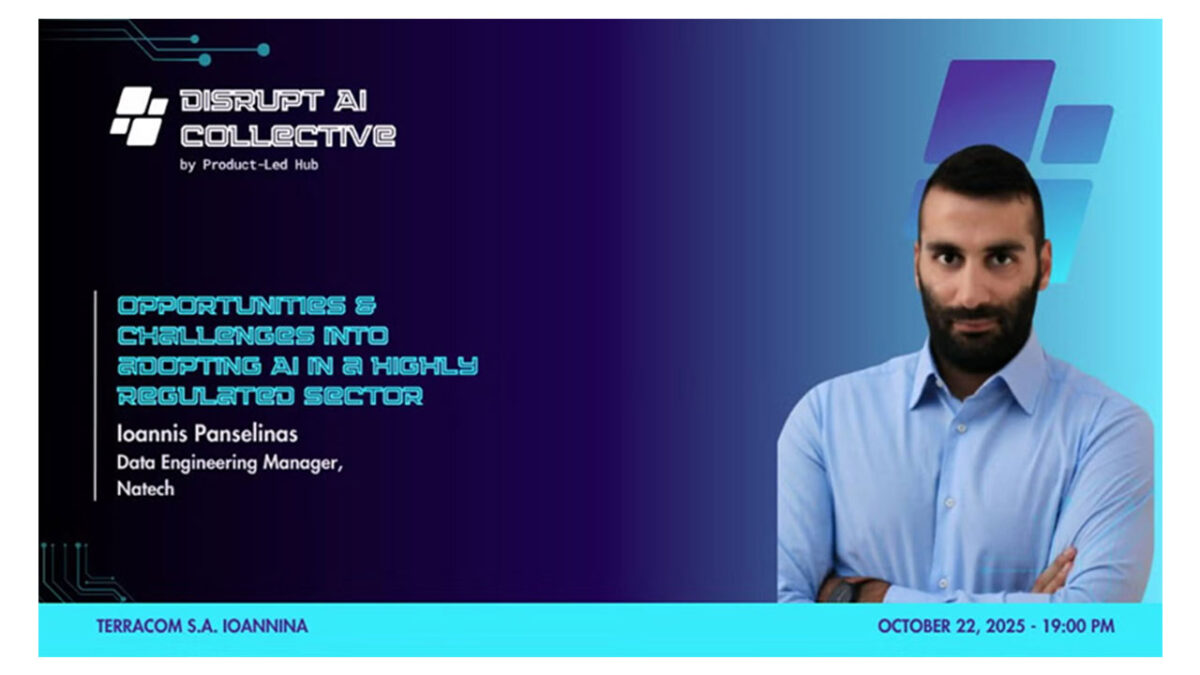 Το meetup, με τίτλο «Ευκαιρίες και προκλήσεις στην υιοθέτηση της Τεχνητής Νοημοσύνης σε έναν αυστηρά ρυθμιζόμενο κλάδο», θα φιλοξενήσει τον Γιάννη Πανσελινά από τη Natech Banking Solutions, ο οποίος θα παρουσιάσει πώς η AI στον τραπεζικό τομέα μπορεί να αξιοποιηθεί αποτελεσματικά και υπεύθυνα, μέσα σε ένα περιβάλλον με αυστηρούς κανονισμούς και απαιτήσεις διαφάνειας.