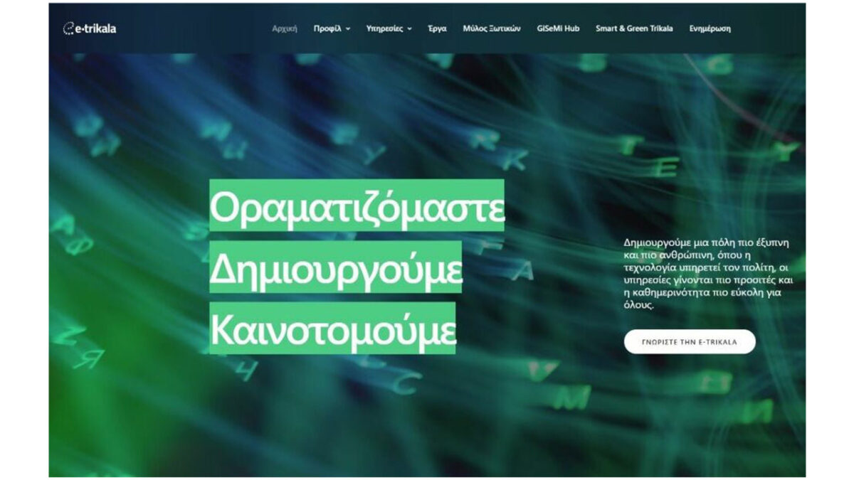 Διαφορετικό λογότυπο για την εταιρεία, διαφορετική οπτική, ευανάγνωστη και εύκολα διαχειρίσιμη ιστοσελίδα, τακτοποιημένη και ακριβής, κάνει πιο εύκολη και πιο ελκυστική την περιήγηση: το προφίλ της, οι υπηρεσίες που προσφέρει και τα έργα, η διαχείριση πολιτιστικών χώρων, φυσικά ο Μύλος των Ξωτικών, το Gisemi Hab (ο κόμβος καινοτομίας και επιχειρηματικότητας), τα Smart and Green Trikala, η Cities Net, είναι πεδία στα οποία καθένας και καθεμία μπορούν να επισκεφθούν και να μάθουν περισσότερα για την εταιρεία.