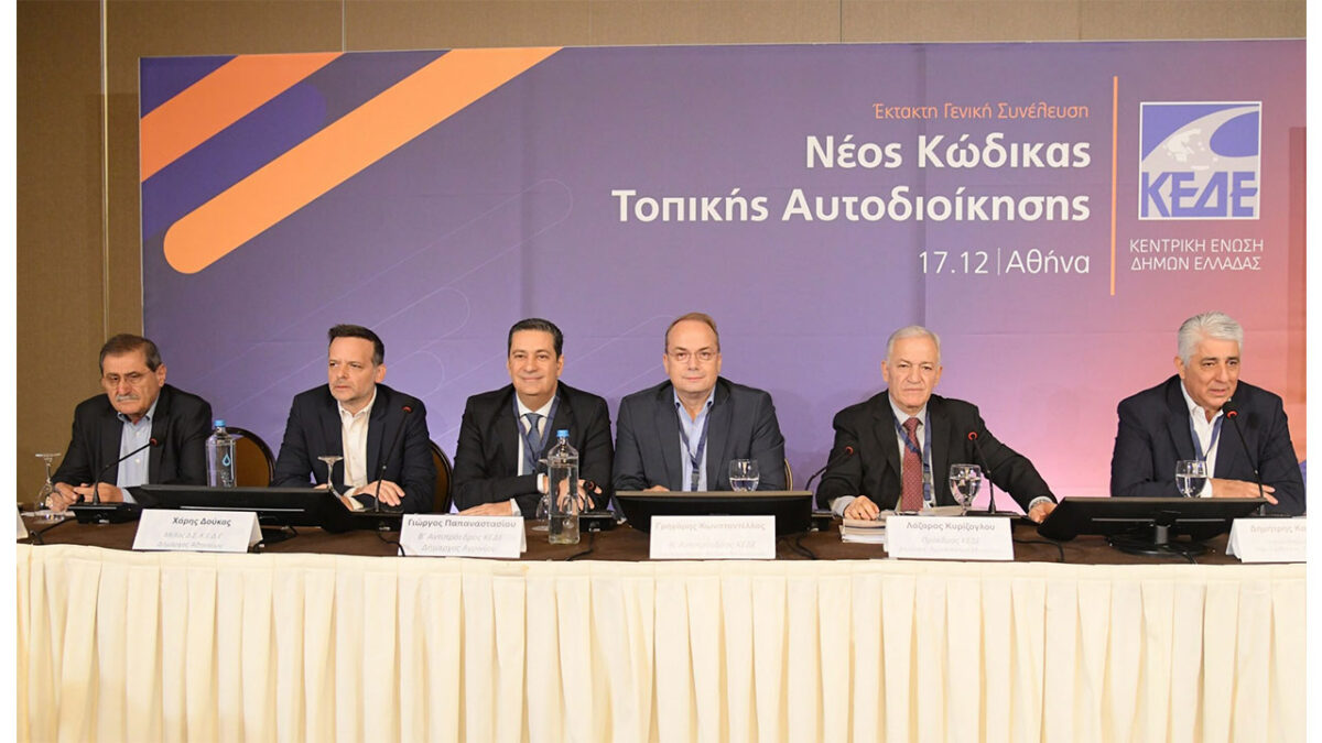 Πραγματοποιήθηκε την Τετάρτη 17 Δεκεμβρίου η έκτακτη Γενική Συνέλευση της Κεντρικής Ένωσης Δήμων Ελλάδας (ΚΕΔΕ), στην οποία συμμετείχαν 418 σύνεδροι (Δήμαρχοι και Δημοτικοί Σύμβουλοι).