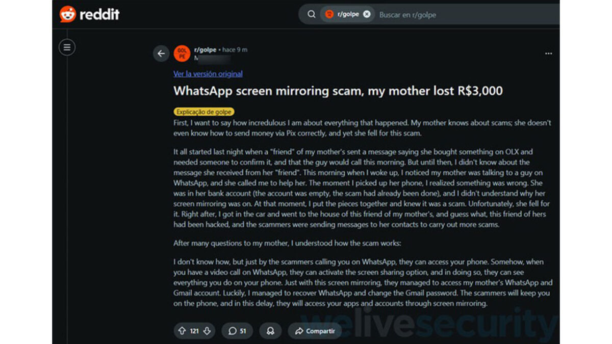 Μια νέα, ύπουλη τακτική που κερδίζει έδαφος τελευταία είναι η εξαπάτηση χρηστών ώστε να μοιραστούν την οθόνη του κινητού τους κατά τη διάρκεια μιας βιντεοκλήσης. Η λειτουργία κοινής χρήσης οθόνης, που προστέθηκε στο WhatsApp από το 2023, χρησιμοποιείται πλέον από απατεώνες για να κλέψουν προσωπικά δεδομένα, ταυτότητες και χρήματα, χωρίς να το καταλάβετε, προειδοποιεί ο Christian Ali Bravo από την ομάδα της παγκόσμιας εταιρίας ψηφιακής ασφάλειας ESET.