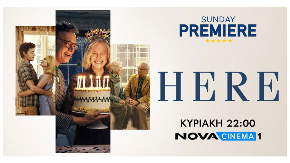 Τη δραματική ταινία «Here» (2024, διάρκειας 99’) με τους Tom Hanks, Robin Wright, Paul Bettany σε σκηνοθεσία του Robert Zemeckis θα απολαύσουν οι σινεφίλ την Κυριακή 19 Οκτωβρίου στις 22:00 στο Novacinema1, στη ζώνη Sunday Premiere της Nova!