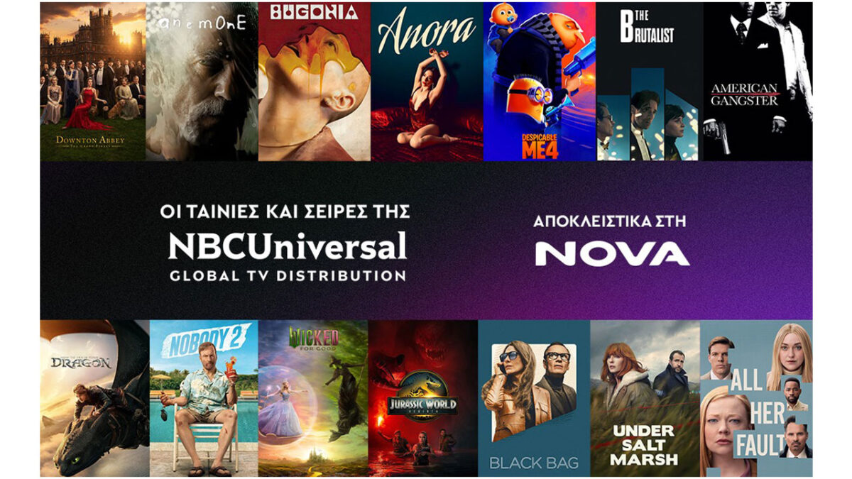 Η Nova, ανακοινώνει την επίτευξη αποκλειστικής, πολυετούς συμφωνίας με την NBCUniversal Global TV Distribution για τα δικαιώματα πρώτης προβολής (first-run pay window) στην Ελλάδα και την Κύπρο για ταινίες και τηλεοπτικές σειρές της NBCUniversal.