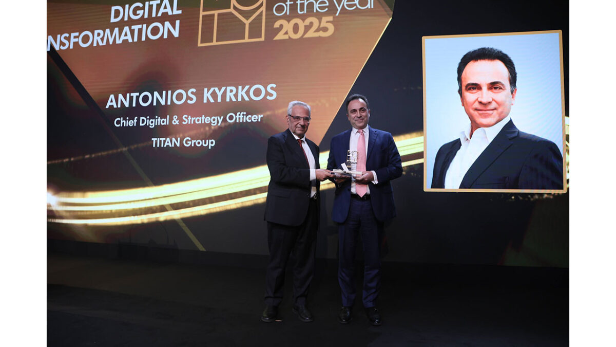 Ο Αντώνης Κύρκος, Chief Digital & Strategy Officer, TITAN Group, είναι ο Digital Transformation Manager of the Year 2025. Παρέλαβε το βραβείο από τον Χάρη Ν. Κωνσταντινίδη, CEO Mellon Technologies, Mellon Group of Companies.