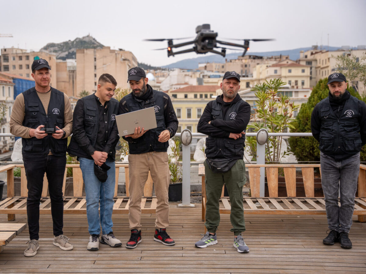 Στην ταράτσα του ιστορικού κτιρίου, ο μικρός Ορέστης είχε την ευκαιρία να παρακολουθήσει πτήση drone από χειριστές της Δημοτικής Αστυνομίας, οι οποίοι του έδειξαν πώς να το πετάει.