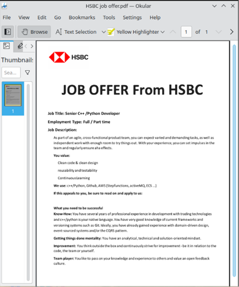 Εικόνα 3. Ψεύτικη προσφορά εργασίας που μεταμφιέζεται ως αρχείο PDF (πηγή: ESET Research)