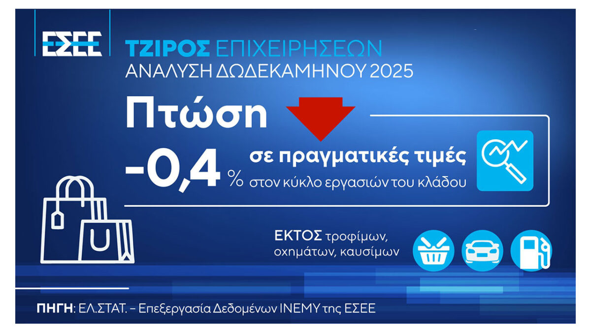«Η ανάλυση του Ινστιτούτου της ΕΣΕΕ επιβεβαιώνει, δυστυχώς, τις προειδοποιήσεις μας ότι το 2025 αποτέλεσε έτος συρρίκνωσης για το λιανικό εμπόριο σε πραγματικούς όρους. Η μείωση του τζίρου είναι πιο αισθητή στις μικρές (-3,9%) και τις πολύ μικρές (-2,9%) επιχειρήσεις, κλονίζοντας τη βιωσιμότητά τους. Την ίδια στιγμή, οι υψηλότερες πωλήσεις στις μεγάλες επιχειρήσεις (+5,6%) και λιγότερο στις μεσαίες (+2,1%) εξανεμίζονται συνήθως από τα υπέρογκα κόστη λειτουργίας. Δύο στοιχεία είναι ιδιαίτερα ανησυχητικά: α) ότι ακόμη και σε ονομαστικές τιμές, καταγράφεται στο σύνολο του λιανικού εμπορίου η μικρότερη αύξηση τζίρου από το 2020 και β) ότι σε πραγματικούς όρους είναι το δεύτερο συνεχόμενο έτος συρρίκνωσης (-0,4%) του ισχυρότερου κλάδου και μεγαλύτερου εργοδότη της οικονομίας. Η Πολιτεία οφείλει να προβληματισθεί από το γεγονός ότι τόσο η εγχώρια κατανάλωση – λόγω της μειωμένης αγοραστικής δύναμης – όσο και οι αυξημένες τουριστικές εισπράξεις στρέφονται και ενισχύουν κυρίως τον κλάδο των τροφίμων. Την ίδια στιγμή, η στενότητα στην αγορά επιβεβαιώνεται και από τη σταδιακή αύξηση των κλειστών καταστημάτων και των ακάλυπτων επιταγών. Με δεδομένο ότι και τους πρώτους δύο μήνες του 2026 η εικόνα δεν έχει βελτιωθεί, οι αριθμοί πλέον «φωνάζουν» για την ανάγκη δικαιότερης αντιμετώπισης του πλέον διασυνδεδεμένου, φορολογικά και εργασιακά, κλάδου της οικονομίας. Είναι σήμερα απολύτως απαραίτητες για την επιβίωση χιλιάδων ΜμΕ, ρυθμίσεις που θα μειώνουν φορολογικές και ασφαλιστικές επιβαρύνσεις, θα διευκολύνουν την πρόσβαση στη χρηματοδότηση, θα επιβραβεύουν τους συνεπείς, θα ρυθμίζουν τις ληξιπρόθεσμες οφειλές με βιώσιμο τρόπο και θα προστατεύουν τον υγιή ανταγωνισμό. Προκειμένου το Εμπόριο να διαδραματίσει το ρόλο του ως καταλύτης και επιταχυντής της ανάπτυξης, χρειάζεται νέα χρηματοδοτικά εργαλεία που θα το στηρίζουν στον «μαραθώνιο» του ψηφιακού του μετασχηματισμού, καθώς και επικαιροποιημένες πολιτικές που θα το διασυνδέουν ολοκληρωμένα με τον τουρισμό, την αγροδιατροφή και τη βιομηχανία».