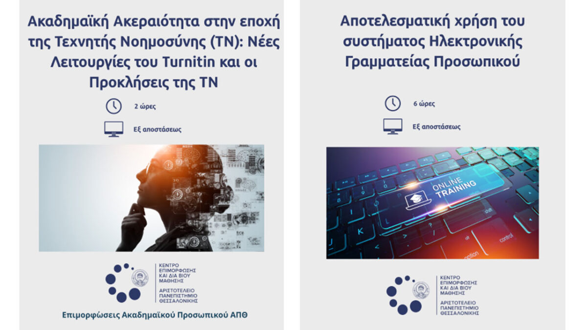Το Αριστοτέλειο Πανεπιστήμιο, μέσω του Κέντρου Επιμόρφωσης και Διά Βίου Μάθησης (ΚΕΔΙΒΙΜ), ανακοινώνει την έναρξη νέων δωρεάν επιμορφωτικών προγραμμάτων, τα οποία απευθύνονται αποκλειστικά στους/στις φοιτητές/τριες, το διοικητικό και διδακτικό προσωπικό του Πανεπιστημίου, στο πλαίσιο της διαρκούς ενίσχυσης των γνώσεων, των δεξιοτήτων και της επαγγελματικής τους ανάπτυξης.
