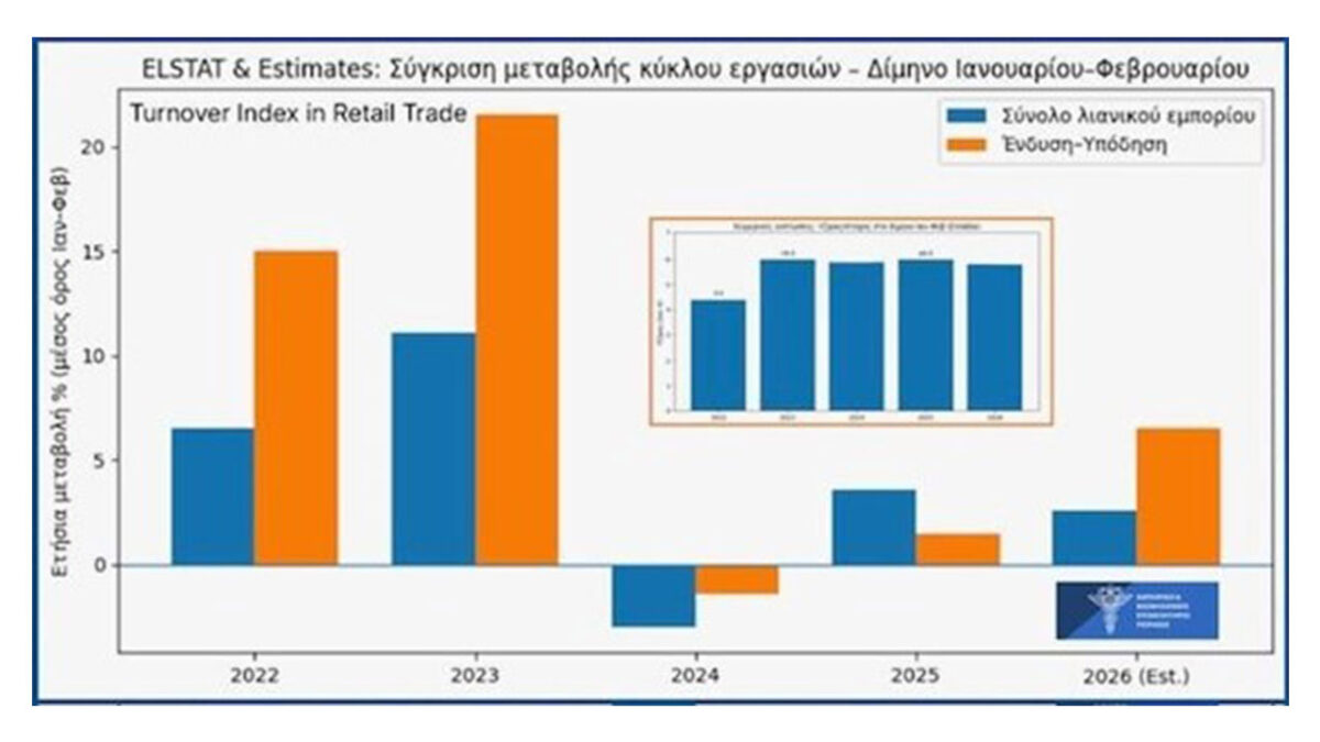 Στην πιο δημοφιλή κατηγορία των εκπτωτικών περιόδων, της «Ένδυσης και Υπόδησης», σύμφωνα με την ΕΛΣΤΑΤ, η ετήσια αύξηση του Δείκτη Τιμών Καταναλωτή αυξήθηκε μεταξύ Ιανουαρίου 2026 και Ιανουαρίου 2025 κατά +8,0 %. Σημειωτέον πως, η αύξηση του ΔΤΚ στην ένδυση-υπόδηση ήταν περίπου +1,8 % στο τέλος του 2025, ενώ ο τζίρος ήταν ουσιαστικά στάσιμος, φτάνοντας πέρυσι τα 3,8 δις ευρώ. Ειδικότερα στα καταστήματα ενδυμάτων καταγράφηκε οριακή ετήσια αύξηση +0,6%, ενώ στα καταστήματα υποδημάτων καταγράφηκε μείωση -3,2%. Επίσης, σε αποπληθωρισμένες τιμές που αντανακλούν στον περιορισμό του διαθέσιμου εισοδήματος των καταναλωτών, οι αγορές μειώθηκαν -1,8% στην ένδυση και -5,6% στην υπόδηση. Άρα, το τεχνικά υψηλό ποσοστό της αύξησης 8% του Ιανουαρίου 2026, σε σύγκριση με τα αντίστοιχα περυσινά επίπεδα δεν οφείλεται στην υπερθέρμανση της αγοράς, αλλά είναι κυρίως αποτέλεσμα συνδυασμού των παρακάτω επτά διαρθρωτικών και συγκυριακών παραγόντων: