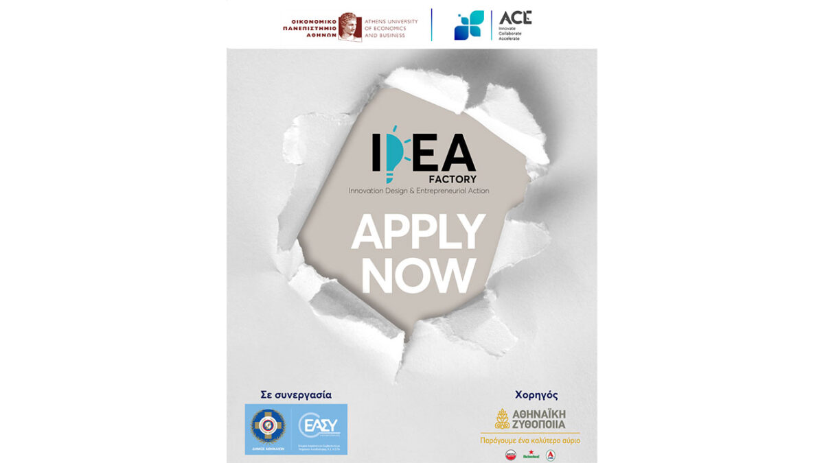 Το IDEA FACTORY (Innovation Design & Entrepreneurial Action) είναι ένα δια-πανεπιστημιακό πρόγραμμα ανάπτυξης επιχειρηματικών ιδεών που συνδυάζει γνώσεις, δεξιότητες καινοτομίας και συνεργασία μεταξύ φοιτητών και ερευνητών από διαφορετικά πεδία. Συντονίζεται από τη Μονάδα Μεταφοράς Τεχνολογίας και Καινοτομίας – ACE του Οικονομικού Πανεπιστημίου Αθηνών, σε συνεργασία με τον Αναπτυξιακό Οργανισμό «ΕΑΣΥ Α.Ε. ΑΟΤΑ» του Δήμου Αθηναίων.