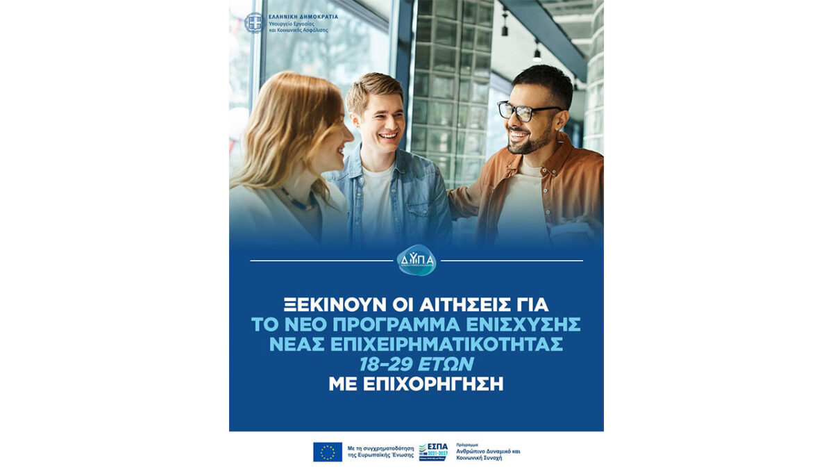 «Ολοκληρωμένο πρόγραμμα ενίσχυσης της νέας επιχειρηματικότητας για ανέργους ηλικίας 18–29 ετών, με έμφαση στις γυναίκες και στην ψηφιακή & πράσινη οικονομία».